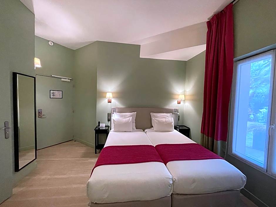 This air-conditioned twin room is consisted of of a flat-screen TV with satellite channels, a private bathroom as well as a balcony with garden views. The unit has 2 beds.